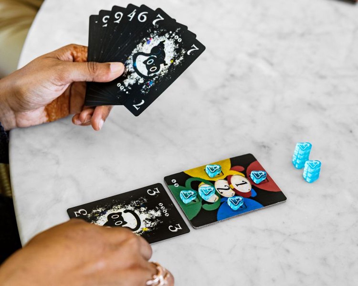 Maar pas op: je mag niet dezelfde kleur claimen voor een kaart met een nummer dat al is gespeeld. Doe je dat toch, dan veroorzaak je een paradox!